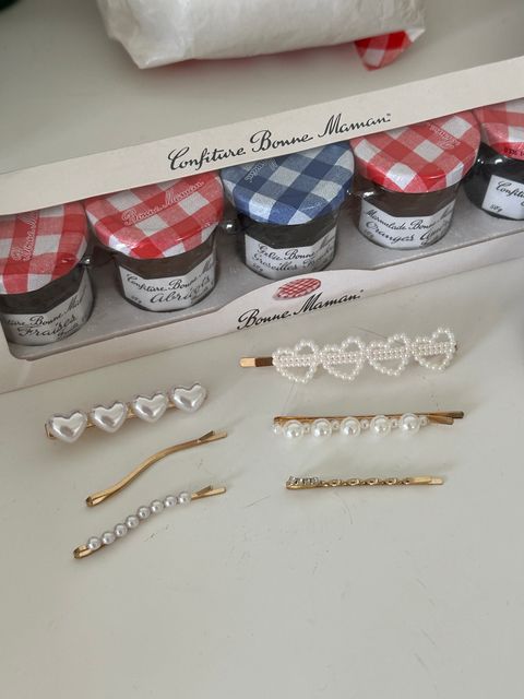 A37黑絨愛心珍珠蝴蝶夾set🖤