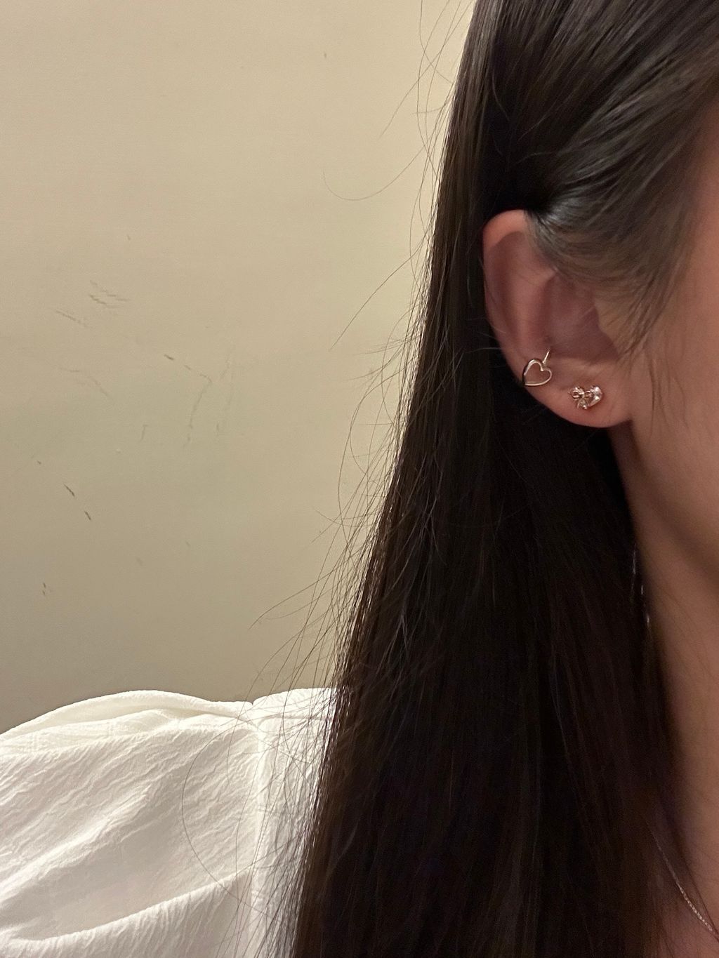 愛心蝴蝶結小鑽耳環୨୧⑅*