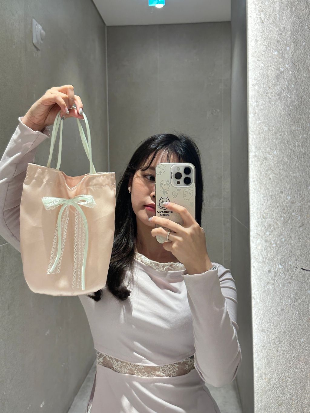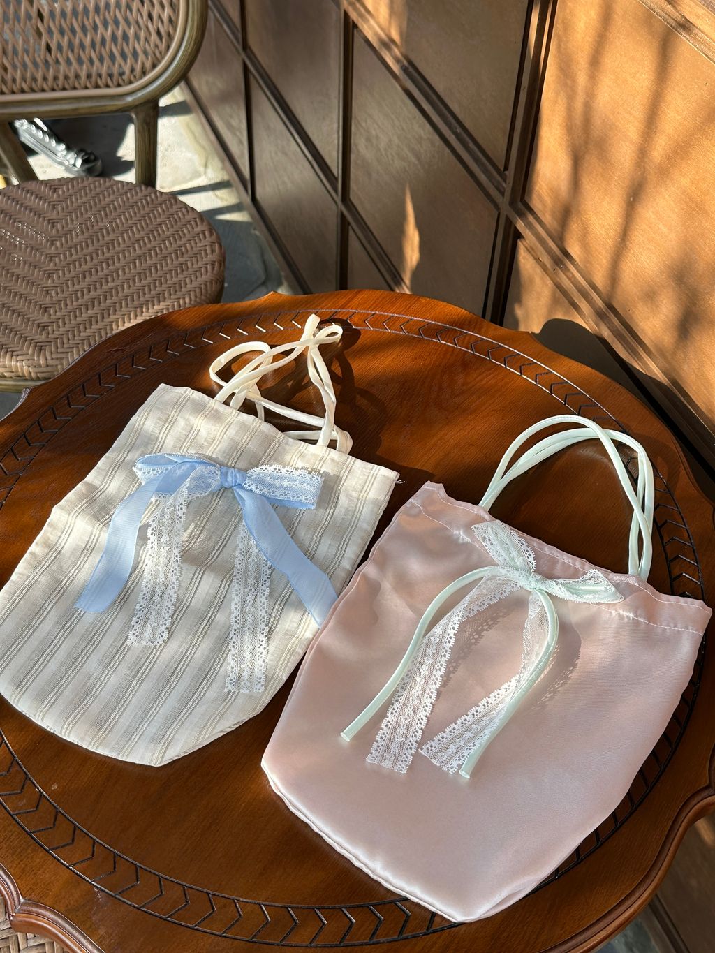 E54 粉綠+蝴蝶結袋(小) -