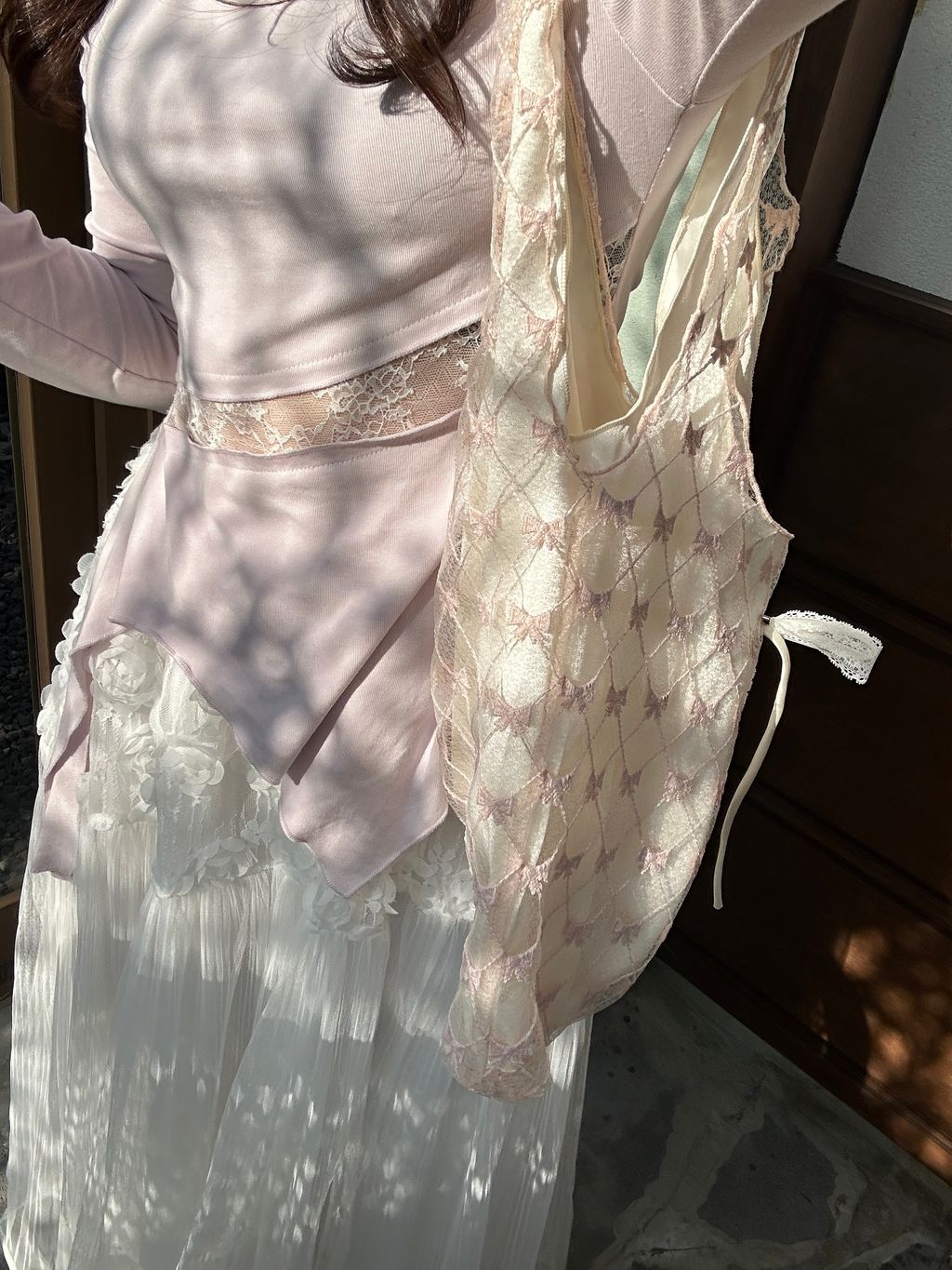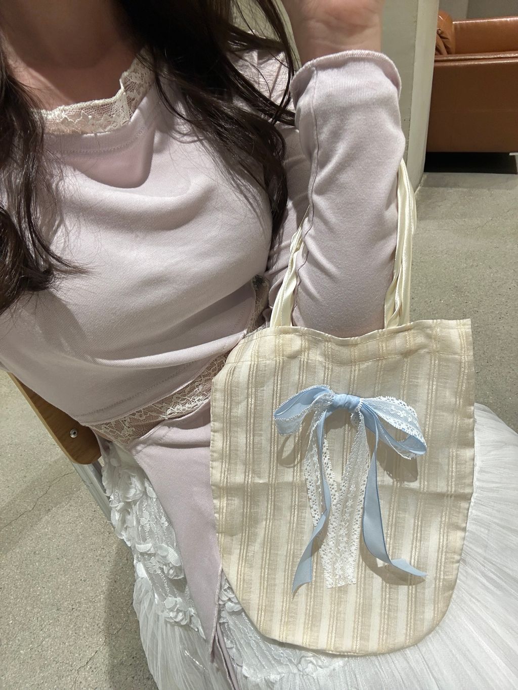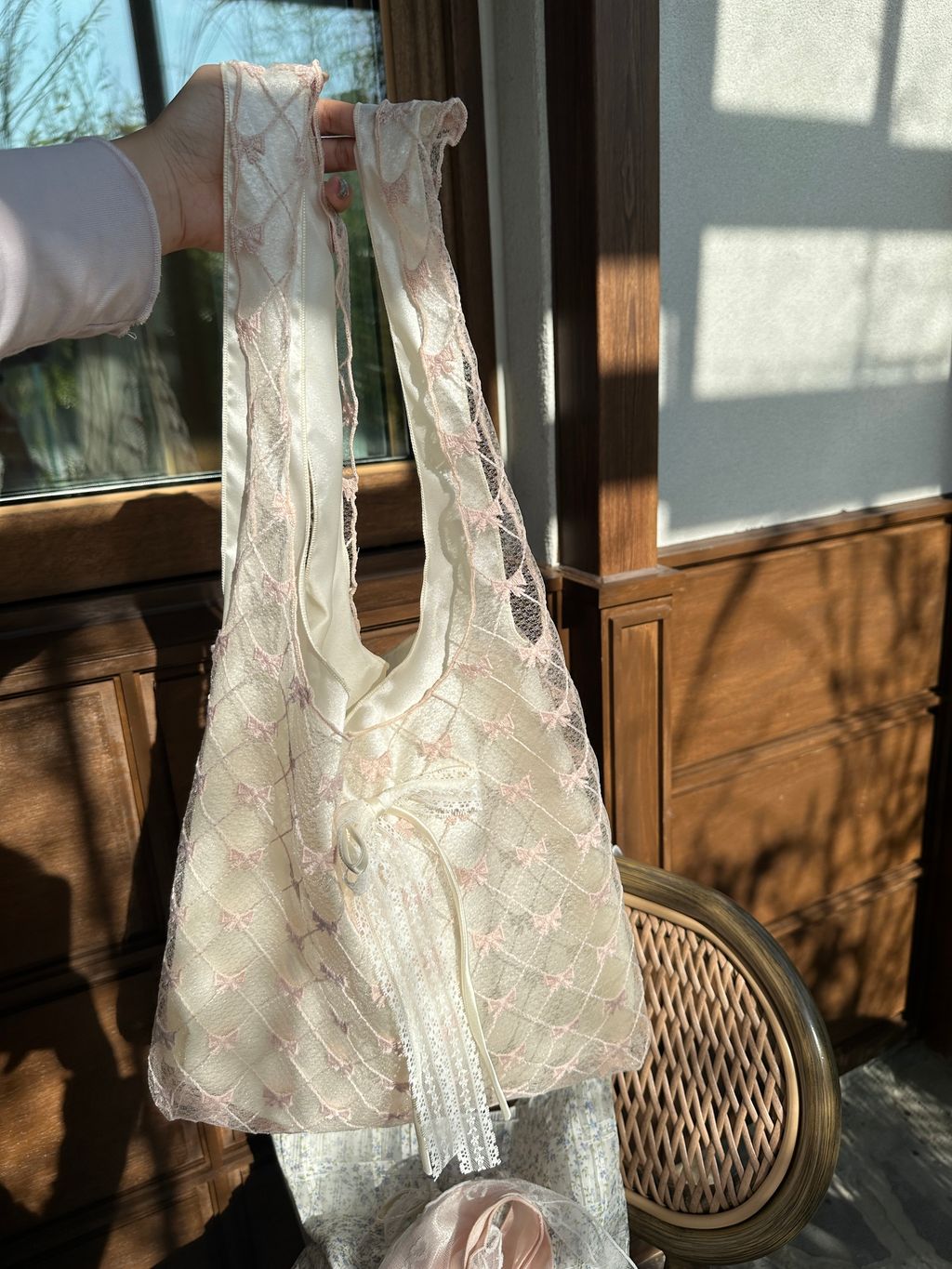 E51 粉白蝴蝶結袋(大) -