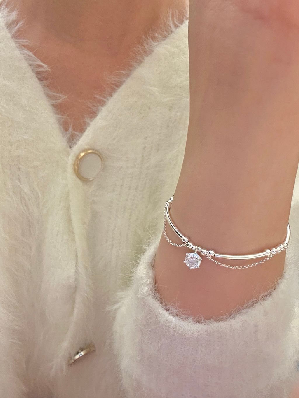 主打✨小鑽啵亮純銀手鍊<彈力繩!>